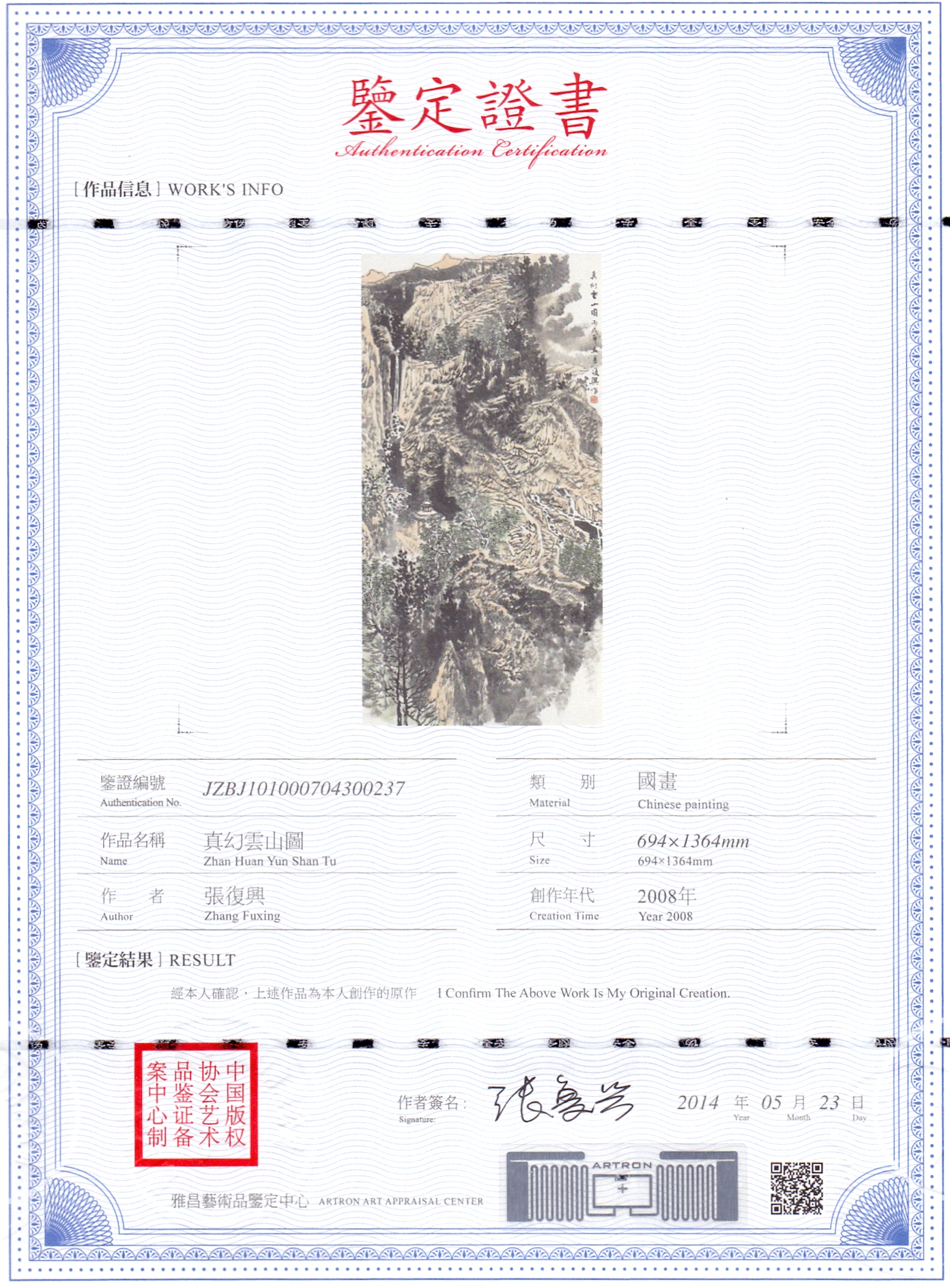真 (由艺术家本人亲自鉴定)