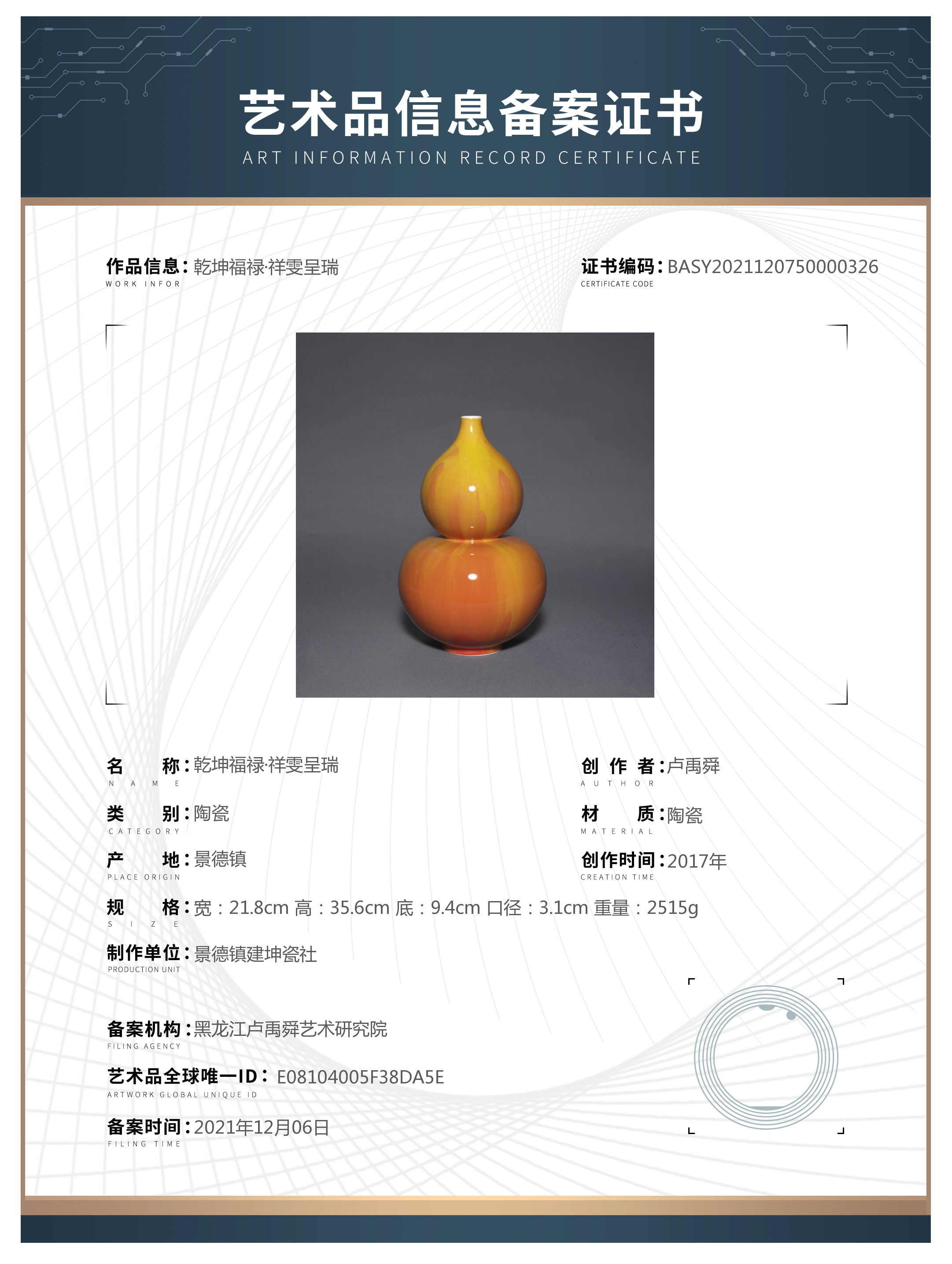 All the original information related to artworks on the certificate is provided by applicants who authorize China Artworks Authentication Center to conduct a technical filing and issue relevant filing certificate.