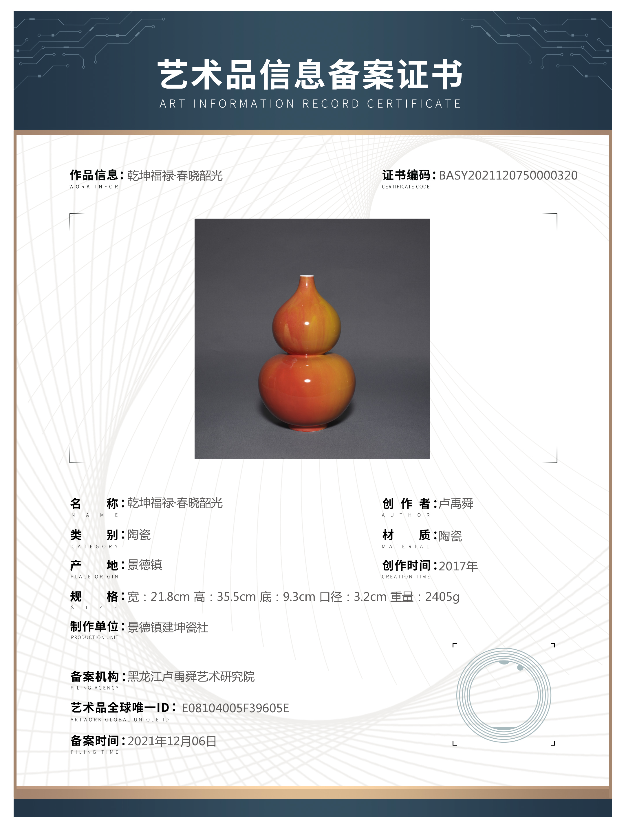 All the original information related to artworks on the certificate is provided by applicants who authorize China Artworks Authentication Center to conduct a technical filing and issue relevant filing certificate.